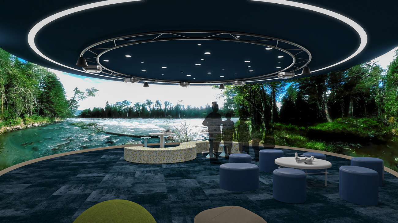 Central among them is the immersive classroom, a transformative learning environment. Designed as a circular space, it features a nearly 360-degree projection surface paired with a sophisticated audiovisual system that creates a fully immersive virtual reality experience. This innovation gives educators and students the ability to transcend traditional learning boundaries. Imagine exploring the Amazon rainforest, hearing the sounds of wildlife, or traveling to the moon to study its surface. Students can experience different climate zones, observe fauna in their natural habitats, and engage with cultures across the globe — all without leaving the classroom. Beyond exploration, the system supports custom-designed instructional content, enabling teachers to adapt scenarios for any subject, from science to history, fostering deeper engagement and understanding. To maximize versatility, the space is also designed to function as a collaborative hub, supporting group projects and interactive learning sessions.