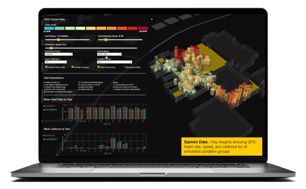 By overlaying interview insights, simulation responses, self-report measures, physiological data, and researcher observations onto a typical school-day flow, the team was able to visualize where strain accumulated, where confidence declined, and where support was most needed. This synthesis made it possible to identify moments that consistently challenge educators across multiple conditions, such as transitions between spaces, prolonged standing, floor-level engagement with students, and periods requiring sustained focus amid sensory stimulation.