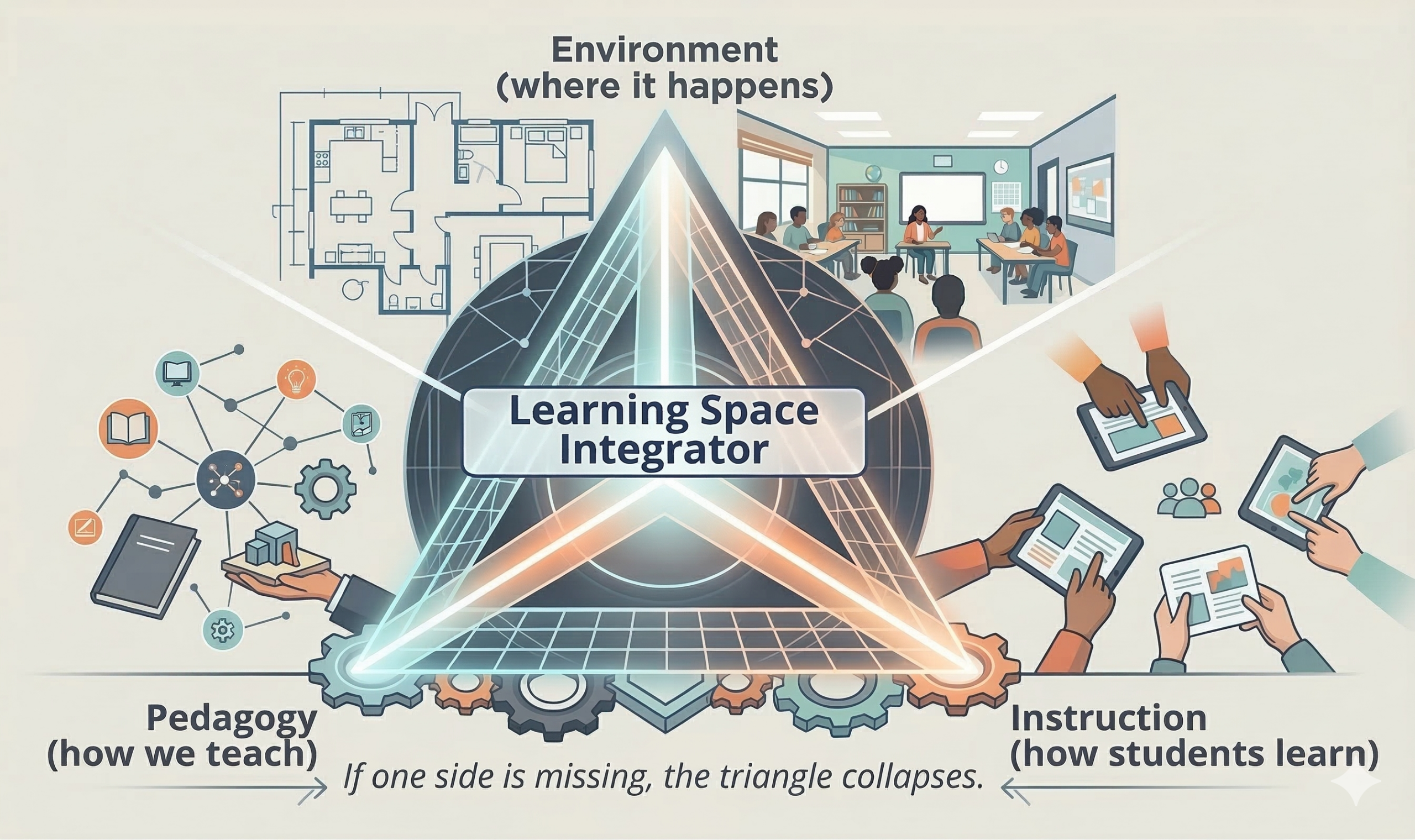 Most importantly, the Learning Space Integrator must be selected early and embedded as part of the design team from the beginning. When this role shows up late, the work becomes corrective. When it shows up early, the work becomes strategic.